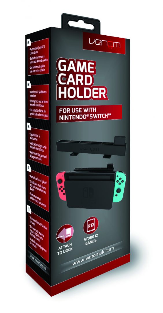 Kelly Rist, Marketing Executive for Venom, commented, “The Nintendo Switch continues its popularity at retail. Millions of Game Cards are expected to be sold through the Holiday, but with their diminutive size, the cards are easily lost. For a small investment, the Game Card Holder is simplicity itself, ensuring that all gamer’s cards are kept safe and secure at all times. We believe this will be an essential gift this year to those with a growing collection of software!”