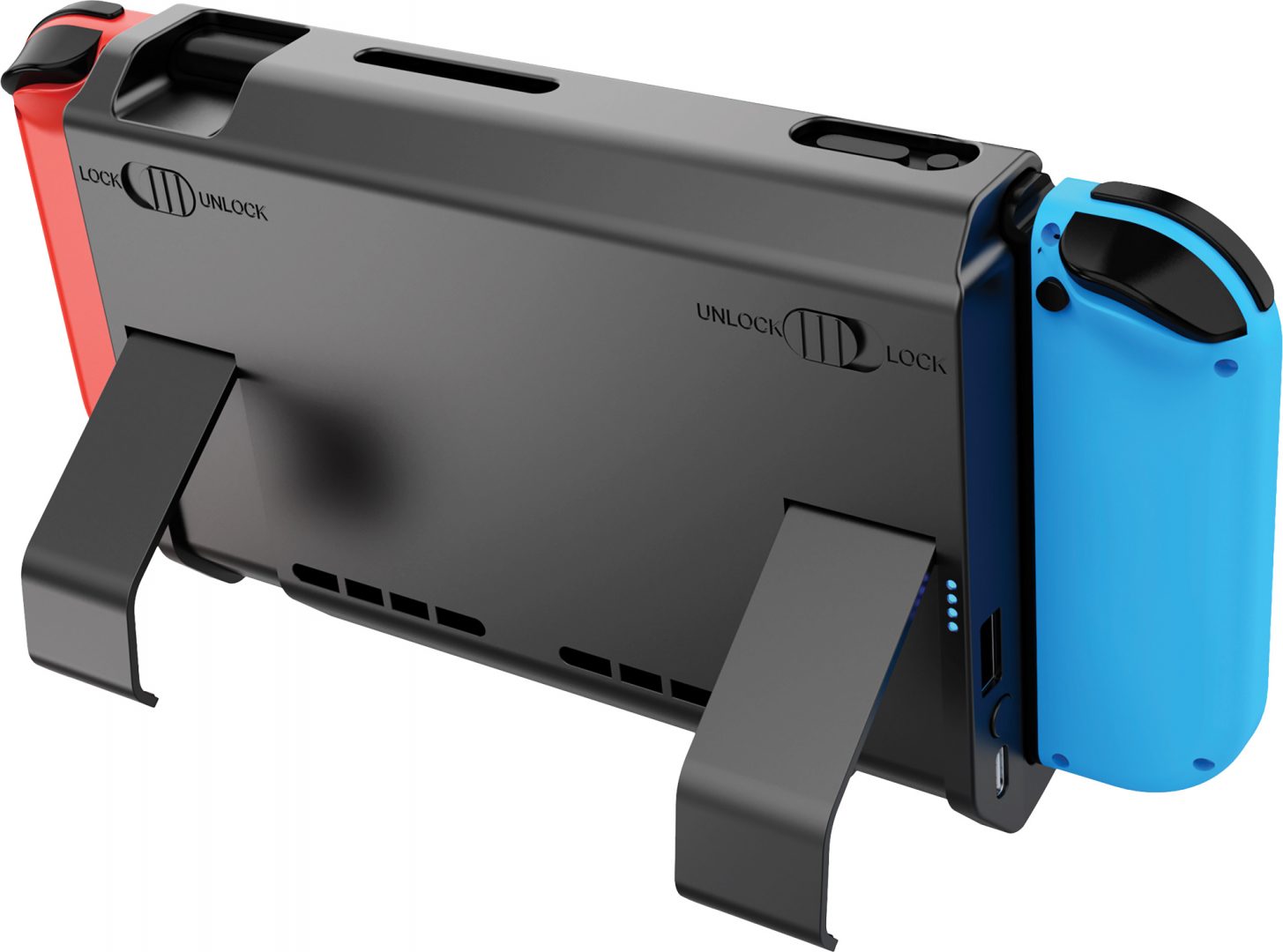 The Power Pack and Stand features a sleek and ergonomic design, perfectly complementing the Nintendo Switch and locking securely into place on the rear of the console for easy access to all the console controls. With a built-in kickstand and additional USB charging point for convenience, the high-capacity 10,000 mAh lithium-ion rechargeable battery pack is a force to be reckoned with, providing over three times the playing time compared to using the Switch alone – perfect for sustained gaming sessions where plug in power is hard to find.
