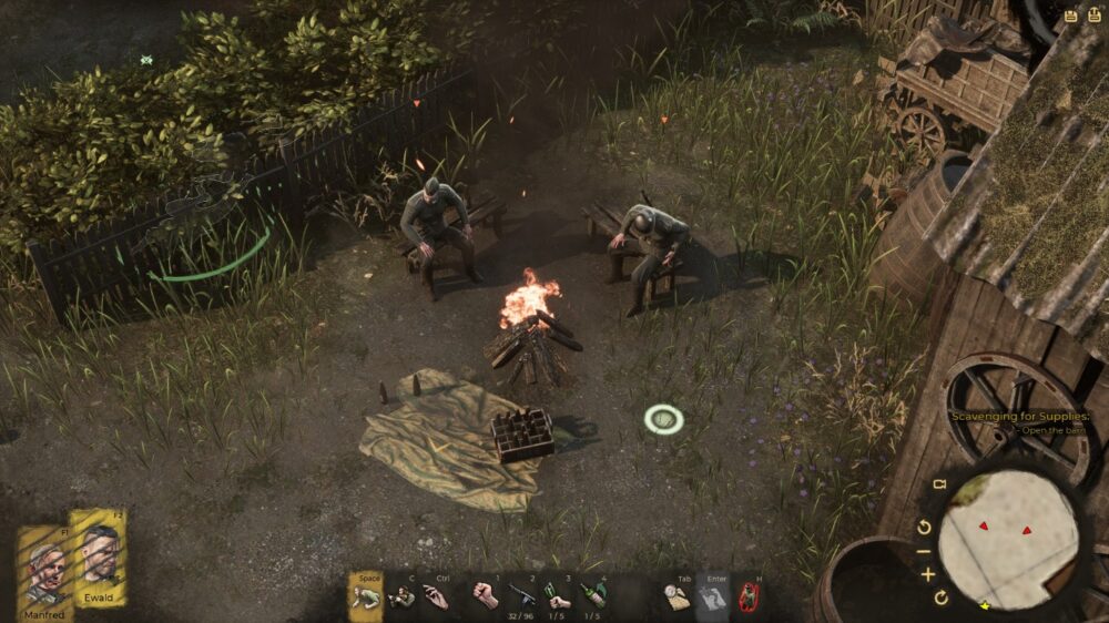 This brings me to War Mongrels core gameplay loop. Each level in War Mongrels involves completing specific objectives with your units. For example, if you have Ewald and Lukas in your party, you will command both of them and try to complete the objective without dying while using their special abilities. This can be done in 2 ways usually. The first method involves being as stealthy as possible and picking off guards on patrol one by one. The second involves simply gunning down the enemy. The latter typically ends with your characters dying and you having to reload a checkpoint to try again. There are certain scenarios where combat does succeed though.