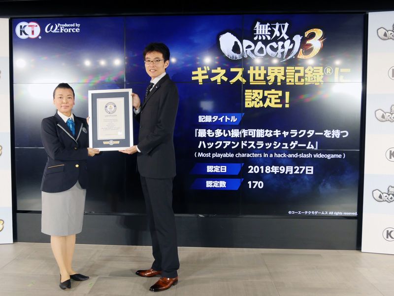 Guinness World Records have officially recognised Warriors Orochi 4 as having the most playable characters in a hack-and-slash videogame. The certificate was presented to the gameβs producer Masaki Furusawa during a press event in Japan.