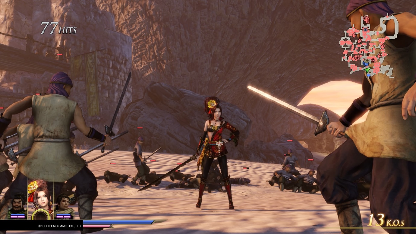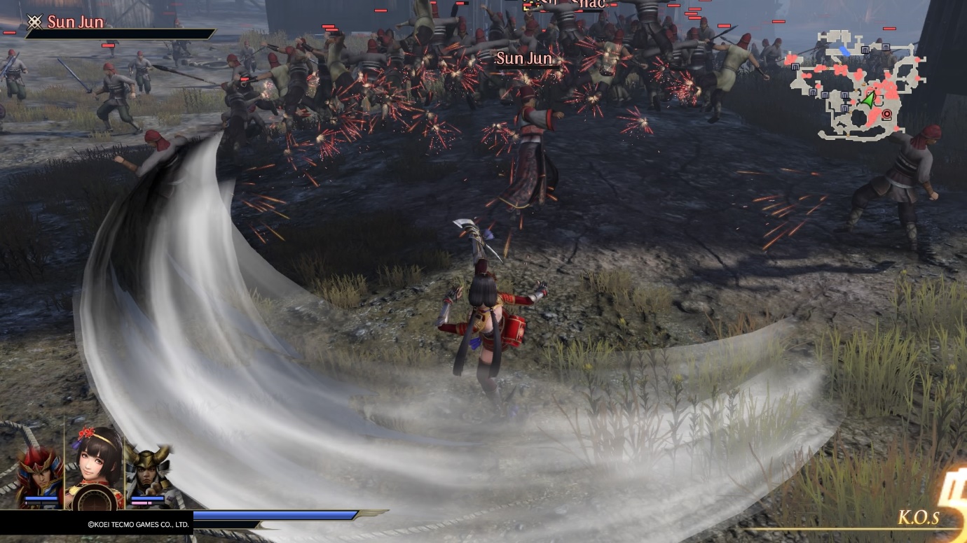 With these great Chinese and Japanese warriors thrust into an unknown world, the player will soon take on the role of 1 of 3 main party members on the battlefield. Players can swap between these 3 characters on the fly with a press of a button and can even combine attacks from one character straight into another character’s attack pattern. In addition to the 3 main party characters, 4 support characters join the fray and lend their abilities on the battlefield as NPCs. This is often barely noticeable but the help is appreciated when enemy numbers get too high.