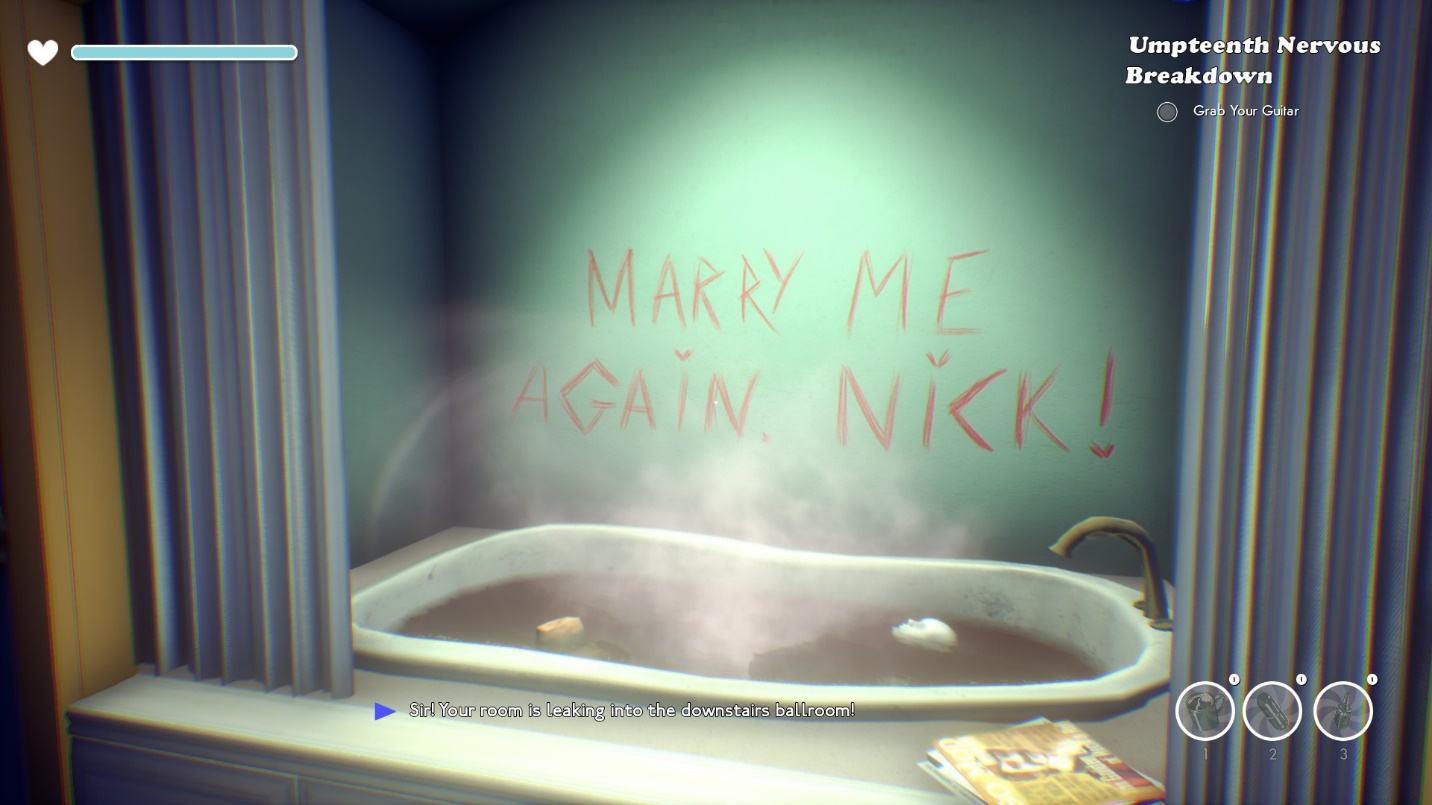 After coming to his senses Nick realises that something’s awry. Why is he covered in blood? Why is his room flooding? What’s happening to his mind and why can’t he remember anything? Players will have to help him escape and find out exactly what happened.