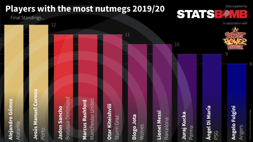 The Panna d’Or, or Golden Nutmeg, has been created by arcade sports video game Street Power Football in partnership with StatsBomb, one of Europe’s leading stats agencies. The award has been decided using data tracking nutmegs across Europe’s top leagues and competitions.