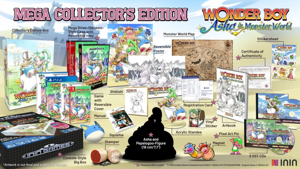 The beloved original Monster World IV is included in all physical editions. Monster World IV is featured on the cartridge for Nintendo Switch and will be an exclusive download code that comes with the PS4 disc version of Asha in Monster World..