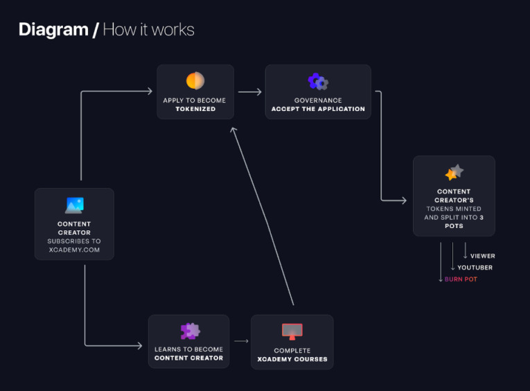 When a YouTuber joins the Xcad Network, which is achieved by applying to Xcad Network’s governance portal, a fixed amount of creator tokens will be minted and a portion of the tokens are assigned to the creator and vested until they hit performance milestones.