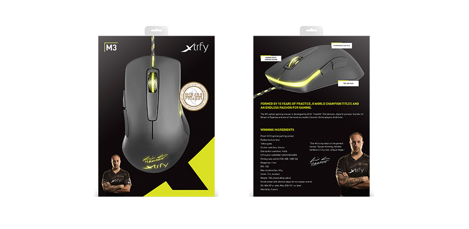 The M3 optical gaming mouse in developed by emil “HeatoN” Christensen, esports pioneer, founder of Ninjas in Pyjamas and one of the most successful Counter-Strike players of all time.