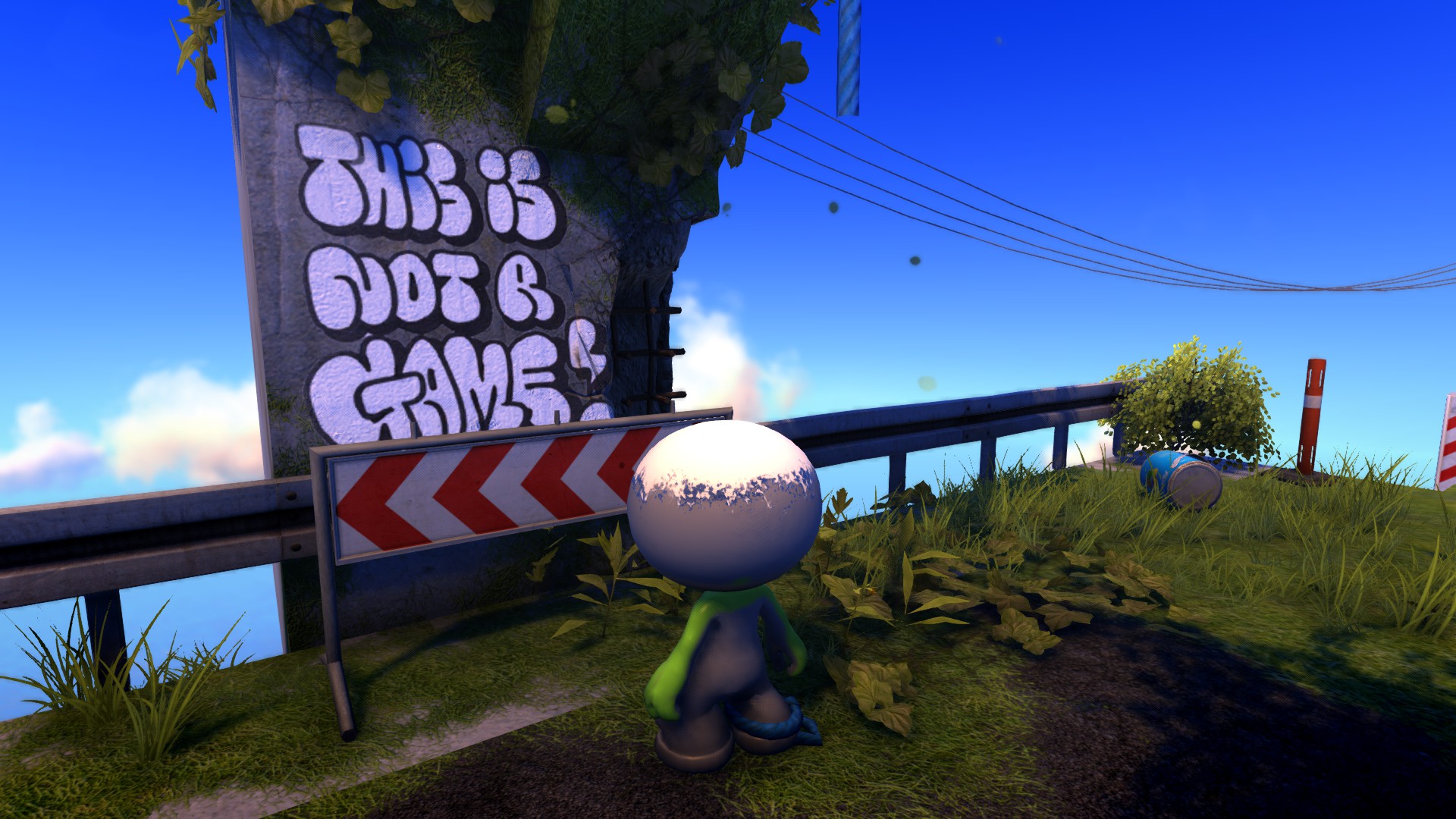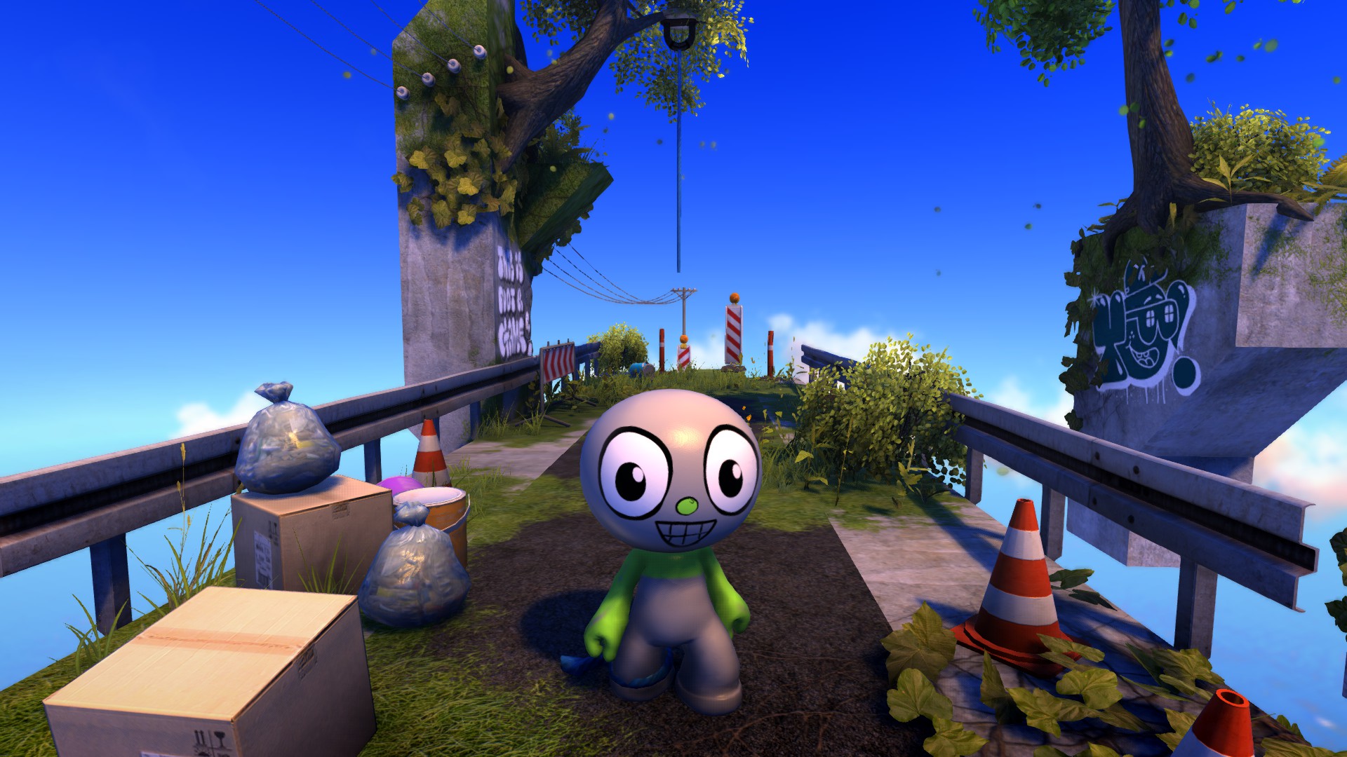 As we previously mentioned in our preview of the game, in Youropa, players will take on the role of a colourless humanoid character that’s devoid of any facial features. After a brief tutorial stint, you’ll soon encounter your first customization pad and will be able to spray paint various facial features onto your character. The customization options available are satisfactory but may be a bit difficult to get to grips with. Nevertheless, this is not worth spending a lot of time on because should you get injured later on in the game, the spray paint you painted your character with can fall off. This was a lesson learnt the hard way.